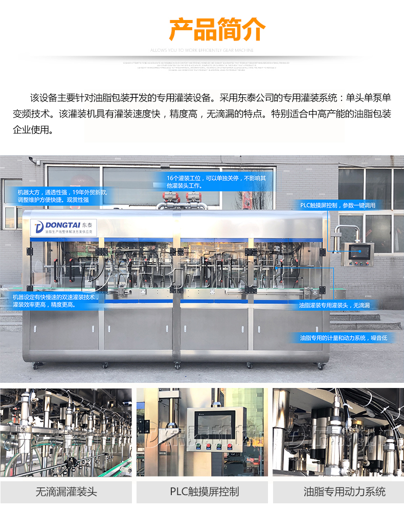 3、摒棄了傳統(tǒng)夾瓶口灌裝方式,采用下潛式灌裝下料口設(shè)計,邊灌邊提,避免了灌裝速度快產(chǎn)生細小水珠噴濺污染瓶口的現(xiàn)象產(chǎn)生。配合多段式快慢速灌裝,可以保障高速灌裝時全速灌裝,又可有效解決氣壓過高快速灌裝時泡沫溢瓶現(xiàn)象,變頻控制更,自我保護更安全,穩(wěn)定,延長設(shè)備使用壽命。