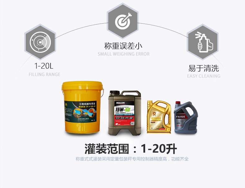 半自動油脂灌裝機(jī)適合各種不同粘稠度的油脂油類,能兼容瓶型、桶型的灌裝,可用于潤滑油、機(jī)油、花生油、食用油、大豆油、橄欖油等灌裝。