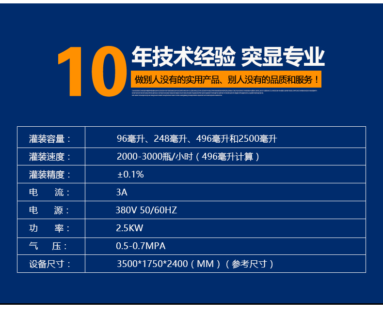 6.灌裝精度高,性能穩(wěn)定,操作及調整簡易快捷,品質優(yōu)良卓越。